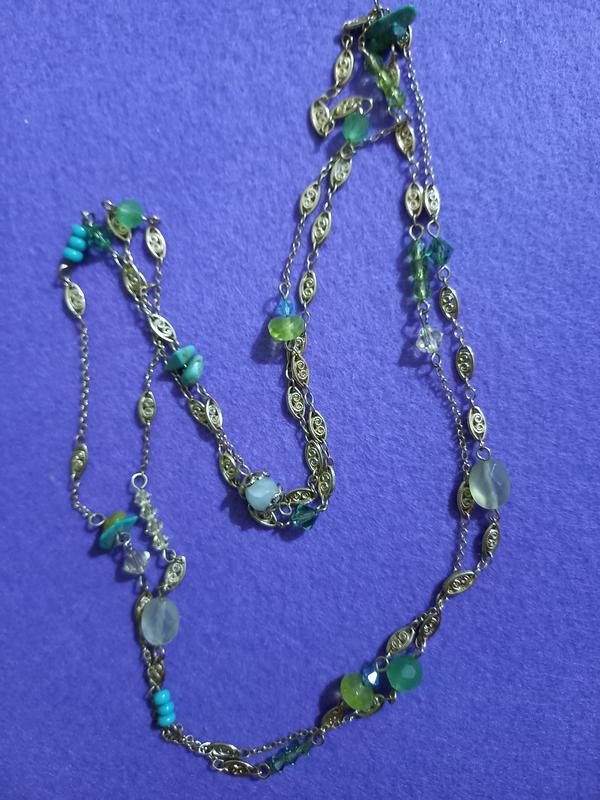 колье с стеклом и камушками на цепочке, без застежки, длина 60см вдвоёт