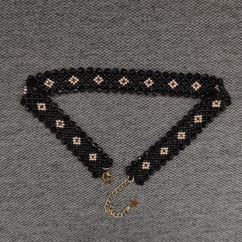 Нежный тонкий гердан из бисера. Длина изделия 29 см + 5,5 см удлинитель.