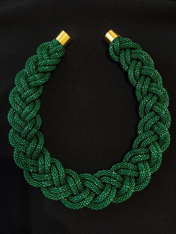 💚 Елегантне намисто з бісеру “Смарагдовий оберіг” 💚 Це розкішне плетене намисто ручної роботи створене з дрібного високоякісного бісеру насиченого смарагдового кольору. Складне багатожильне плетіння надає прикрасі об’єму та витонченості, а золотисті металеві закінчення додають вишуканого блиску. ✨ Особливості: 100% ручна робота Японський бісер високої якості Mastuno Колір: смарагдовий зелений Довжина: комфортна посадка по шиї (кольє) Застібка: металева (золота) магніт з нержавіючої сталі 🌿 Це намисто стане ефектним акцентом у вашому образі — ідеальне як для вечірнього вбрання, так і для повсякденного стилю з ноткою елегантності. 🎁 Підійде як подарунок для жінки, яка цінує унікальні прикраси ручної роботи.