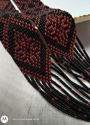 яркий гердан в красно-черных цветах отправилась в свою обладательницу. Выполнен по заказу, возможен повтор в других цветах. Можно к ожерелья сделать браслетик.