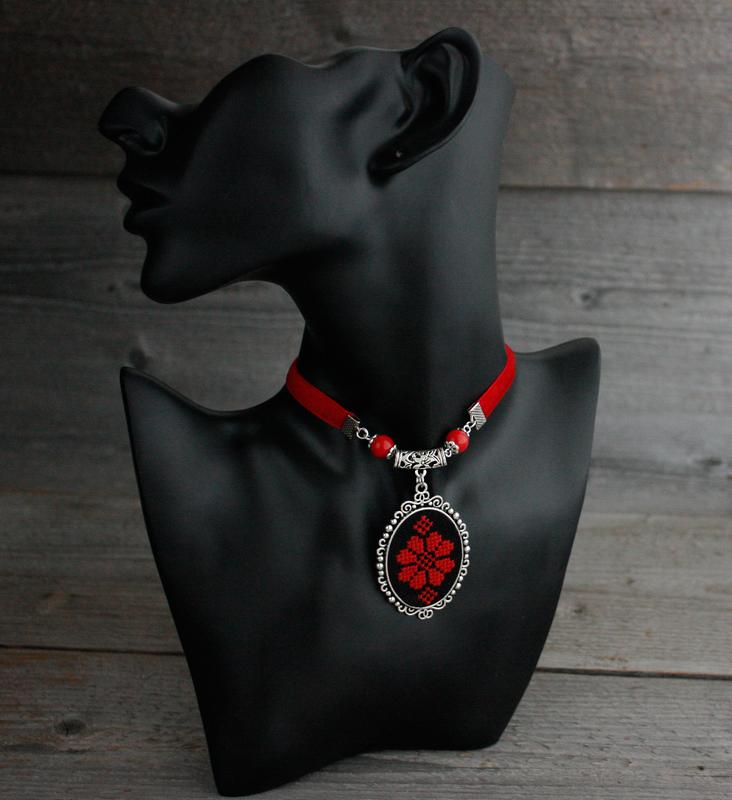 Красный черный этно колье чокер на бархатной ленте дукач под вышиванку