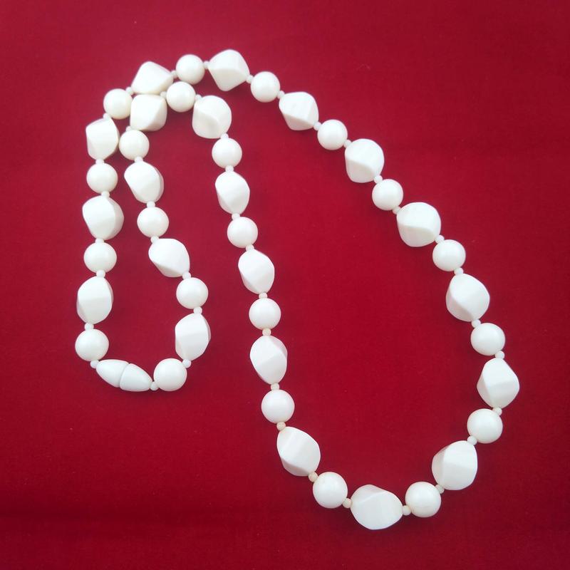 Длинные белые бусы, пластик люцит 1960-е годы, винтаж
