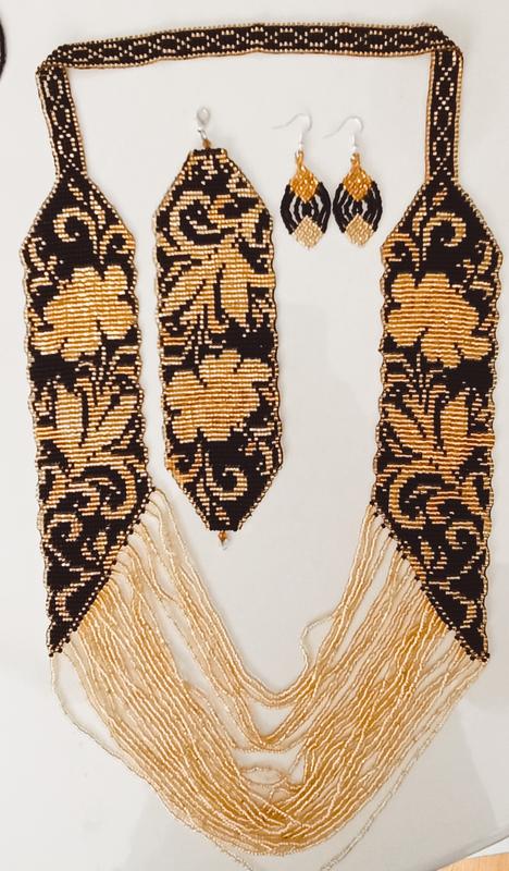 Эксклюзивный набор из бисера (гердан, браслет, серьги) Предлагаю стильный и оригинальный комплект ручной работы из качественного чешского бисера: Гердан с традиционным орнаментом в черном и золотистом цветах. Браслет в том же стиле. Серьги – легкие, удобные и дополняют образ. Особенности: Ручная работа Выполнено из прочной нити и качественного бисера Стильный дизайн, который подходит как к вышиванке, так и к современной одежде Отличный подарок для себя или близкого человека.