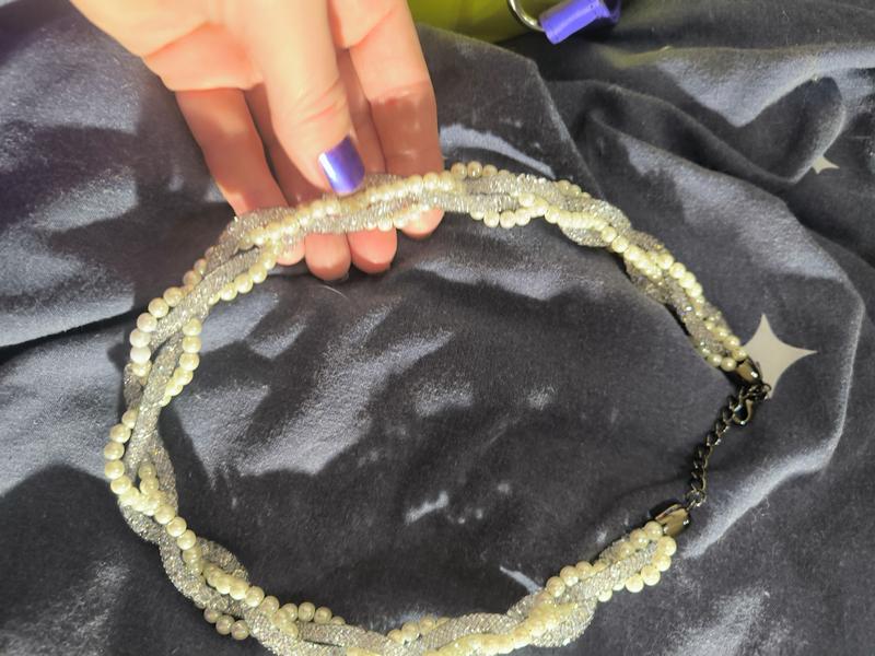 блестящее колье, под жемчуг.