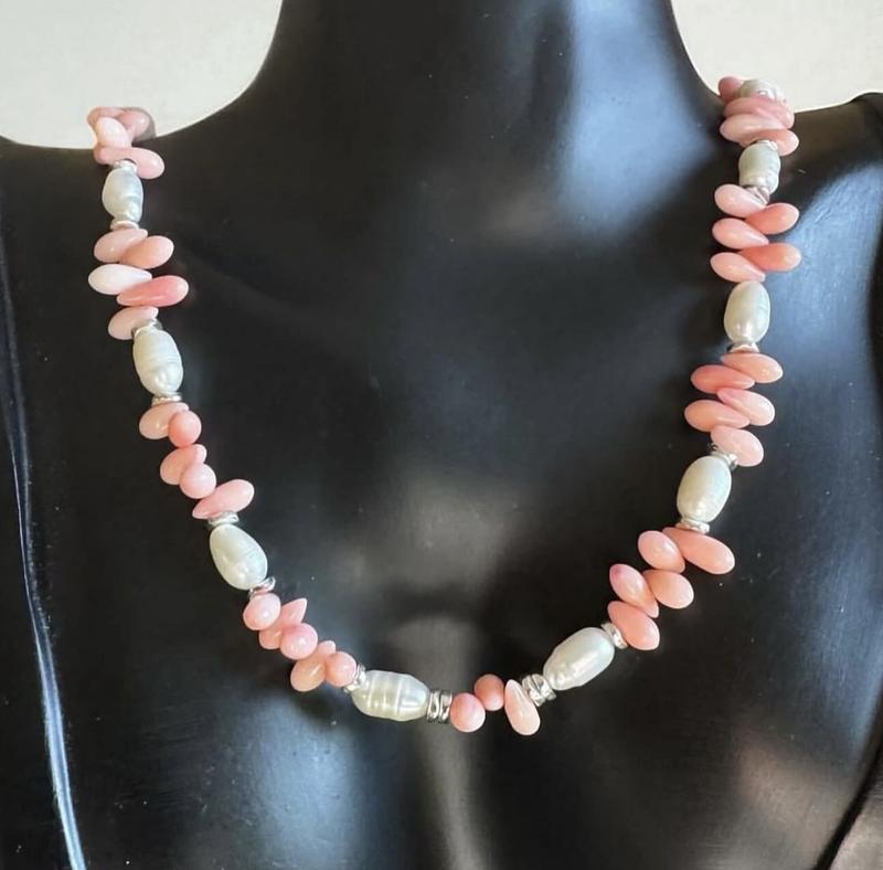 Ніжне кольє з натуральним тонованим коралом та прісноводними перлинами Довжина 42-47см