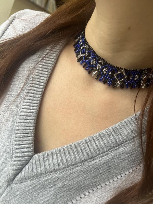 Сияющая силянка. Сверкает как драгоценность в лунную ночь. Данное украшение продано, но возможно воспроизведение узора в других цветах. Также возможно исполнение браслетика и серьг в комплект.