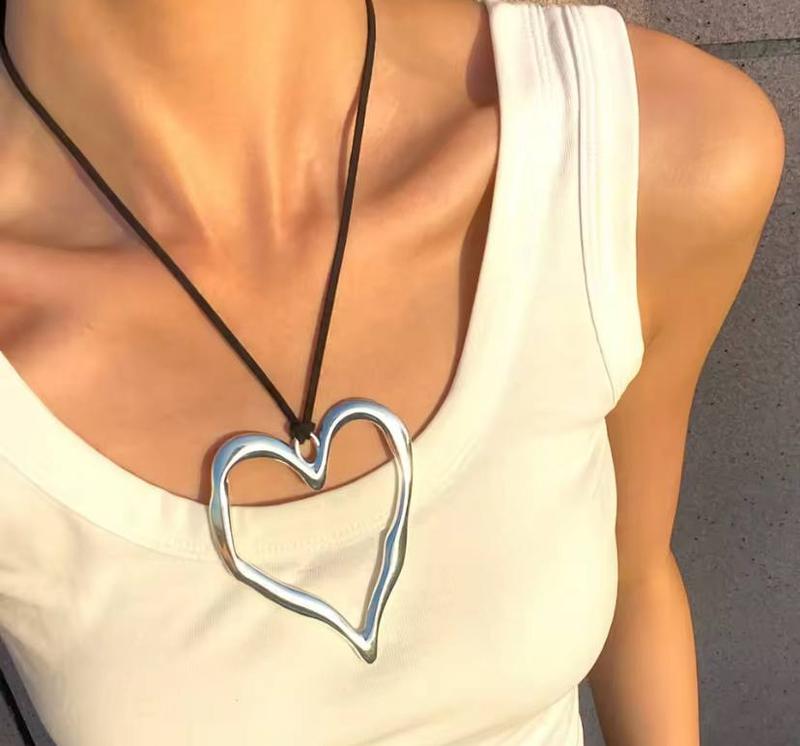 Акция! БЕСПОЛЬЗОЧНАЯ ДОСТАВКА по заказу бижутерии на сумму от 1000 грн. (До отделения почты или поштомат) Акция действует при оплате на реквизиты Довжина шнурка - 75 см. Серце 9,5 см на 7,5 см Длинное трендовое ожерелье на черном шнуре с большой серебристой подвеской в форме сердца с необычной волнистой формой. Яркий акцент для современных образов в стиле бохо, минимализм или кэжуал. Легкий вес и универсальный дизайн позволяют носить подвеску с любой одеждой — от платья до футболки.
