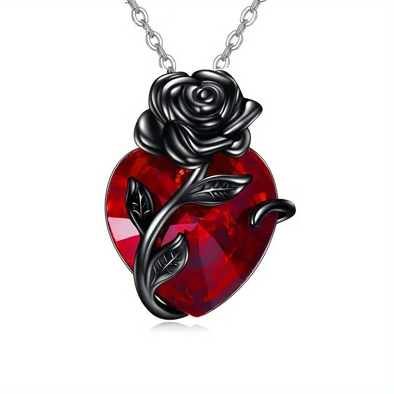 Оригінальна підвіска у вигляді серця з трояндою з ланцюжком