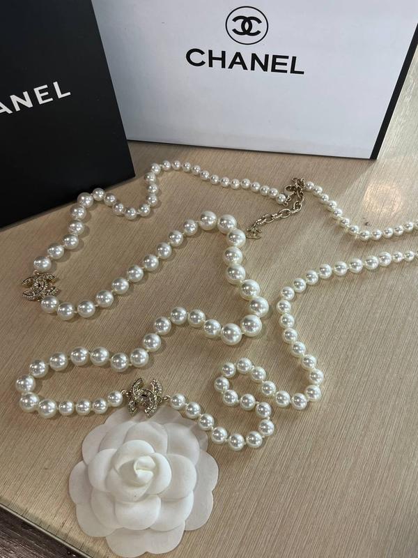 Бусы шанель жемчуг цирконы позолота 18 к / длинные жемчужные бусы
