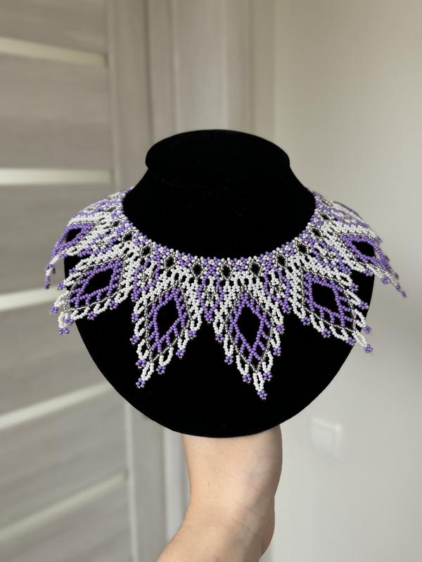 • виконана з чеського бісеру Preciosa • зав’язки з якісної нитки муліне/фурнітура з нержавіючої сталі • ширина 7 см, довжина 35 см (+ 5 см застібка)