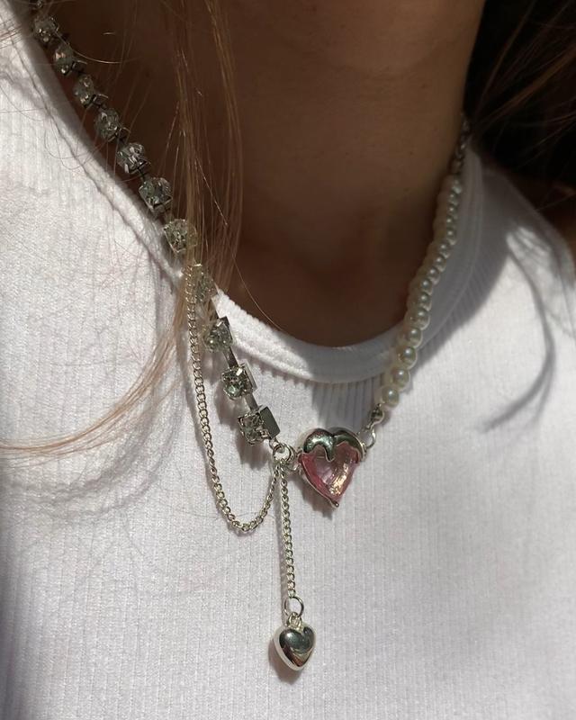 Святковий чокер кольє з серцем ланцюг з намистинами