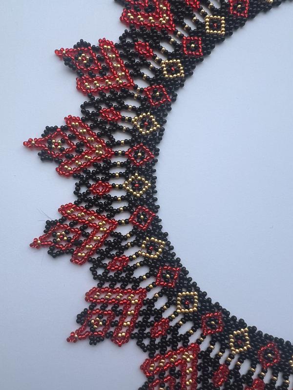 Очень красивая, яркая силянка. Сочетание красного и черного, дополненное золотым. Сейчас в наличии, но возможно изготовление такого украшения в других оттенках.