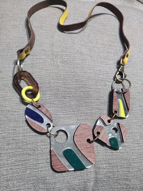 Колье в стиле бохо подчеркнёт вашу индивидуальность.Необычное, качественный пластик,имитация дерева.В полному образу имеются интресные браслеты