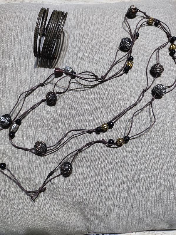 Колье в стиле бохо подчеркнёт вашу индивидуальность.Интересное,розочки и бусины.Качественный пластик.Есть несколько подобных.В полному образу имеются интресные браслеты.