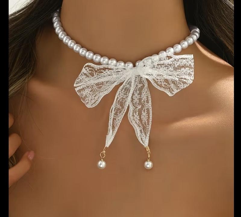 Чокер з бусами та бантом з мережива Кружево/ ажурний