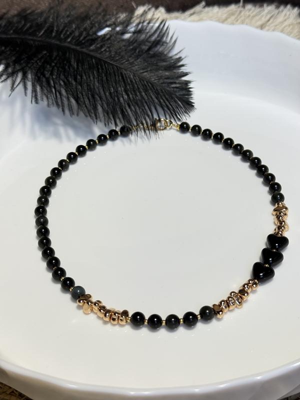 Намисто з намистин котяче око з гематитом