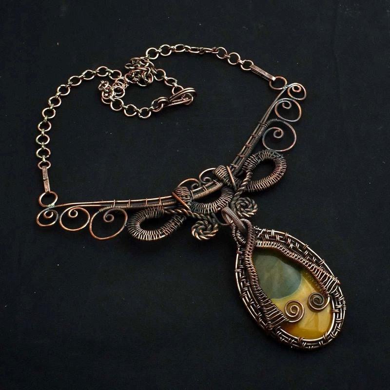 Колье-трансформер в кулон с натуральной океанической яшмой в технике wire wrap