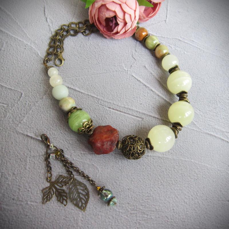 Ожерелье из оникса, яшмы " тихий зимний ящик"