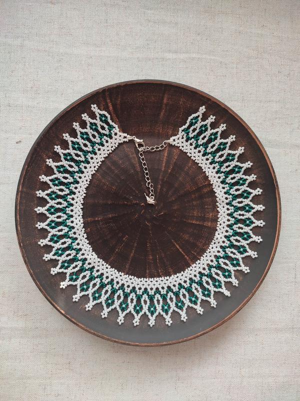Силка из чешского бисера. Ширина 3,5 см длина 38,5 см Застежка цепочка (7см) с карабином.
