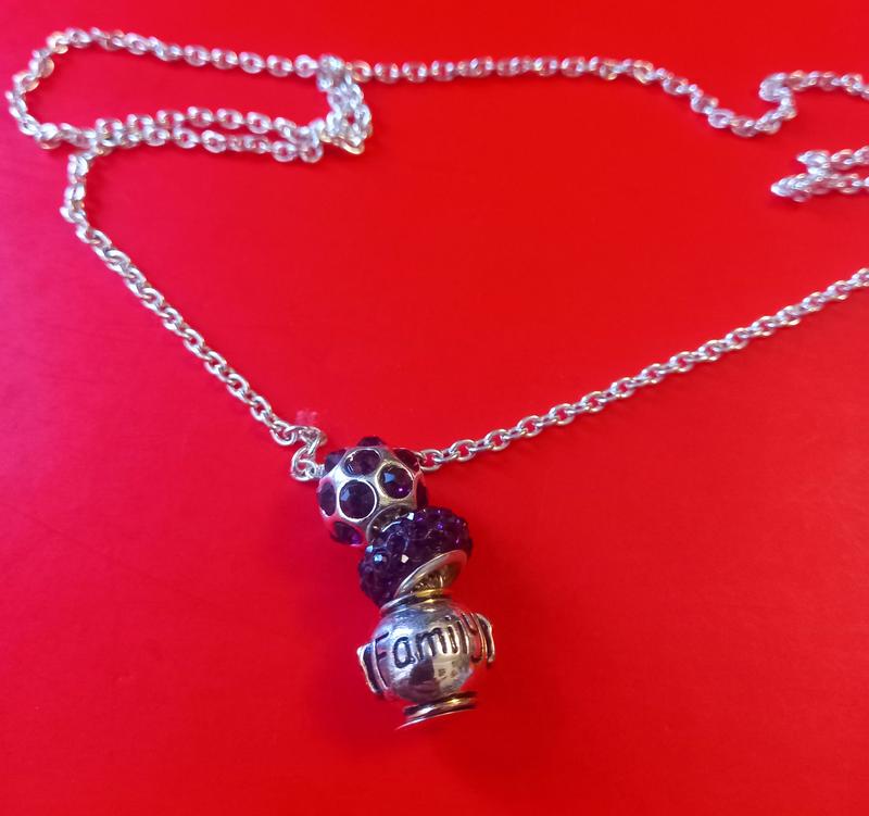 Интересное колье с сияющей подвеской. Сплав серебряного тона. Красивые шармы в кписталах. Изысканно и элегантно смотрится. Хорошее качество. Состояние - очень хороший. Длина - 70 см. Винтаж - 90- те. Америка.