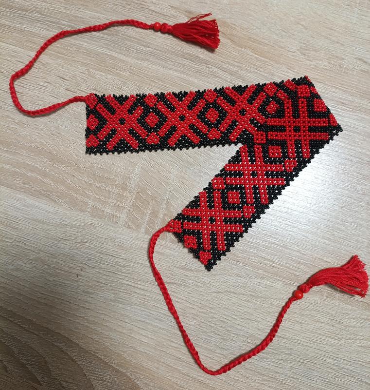 Традиционный украинский гердан в классическом сочетании красного и черного цветов. Изготовлен из качественного бисера с соблюдением аутентичной техники плетения. Особенности: • Длина: 31 см • Ширина: 4,5 см • Кисточки: 25 см каждая • Материал: качественный бисер • Геометрический орнамент в народном стиле Идеально дополнит вышиванку или национальный костюм. Подходит как для повседневной носки, так и для праздничных событий. Отличный подарок для тех, кто ценит украинскую культуру и традиции.