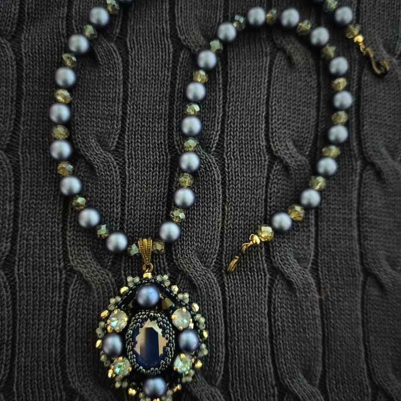 Чокер сделан из кристаллов и жемчужин Сваровски, японского бисера и американской фурнитуры. 900 гривен – это стоимость материалов. Сделала для себя, жаль, что такая красота просто лежит.