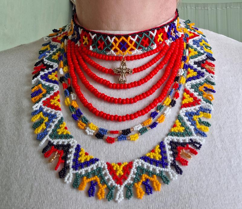 Яскрава силянка на оксамитовій стрічці, за мотивами давньої схеми Має вид комплекту з декількох прикрас Дуже гарно лягає на декольте