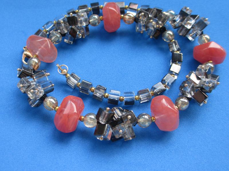 Фантазийное колье с крупными гранеными камнями розового халцедона. Смотрятся оригинально в сочетании со стеклянными бусинами-кубиками. Свежо и ярко. Длина 53 см. Возврат не предусмотрен. Наличие уточняйте предварительно. Не забудьте просмотреть "Все товары продавца" и найдете еще много интересного.