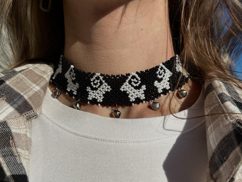 Ґердан з баранчиками 🐏🤍 °ширина 3 см° °довжина 33 см + 8 см ланцюжок° °фурнітура нержавіюча (медична) сталь° °шелести можна прибрати, фурнітуру замінити на завʼязки° Автор схеми: @*************