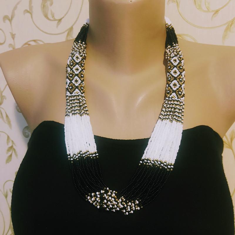 Многорядное этнонисто из чешского бисера и бусин в традиционном стиле. Длина регулируется удлинительной цепочкой.