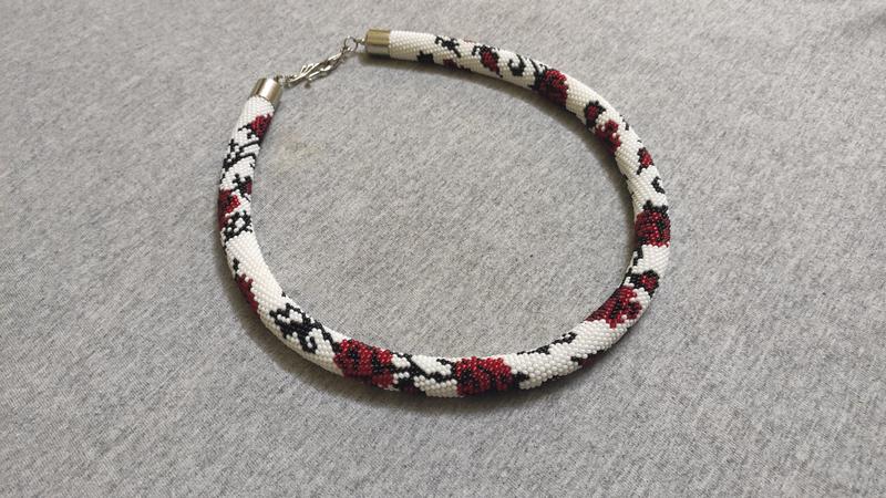 Изготовлен из чешского бисера. Длиной 51 см. Основой служит армированная нить для бисера, обеспечивающая прочность изделия. Изделие удачно дополнит любой ваш образ.