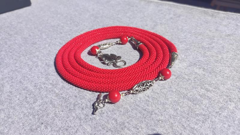 Украшение трансформер из бисера. Изготовлен из чешского бисера, длиной 170 см. Основой служит армированная нить для бисера, обеспечивающая прочность изделия. Изделие удачно дополнит любой ваш образ.