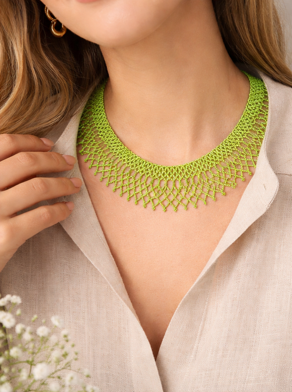 ✨ Яркое колье из бисера ручной работы ✨ Стильное и эффектное колье в сочном лаймовом оттенке - идеальный акцент для любого образа. Легкая ажурная сетка красиво обрамляет шею и добавляет утонченности и уникальности. 💚 Особенности: • Полностью ручная работа • Ажурное плетение из мелкого бисера • Яркий трендовый цвет • Легкое и комфортное в носке • Надежная застежка с удлинителем 💫 Идеально подходит для: • летних образов • фотосессий • вечерних выходов • подарок для особого человека 🌿 Это колье - о индивидуальности, смелость и любовь к деталям. Оно точно не останется незамеченным!