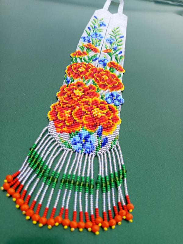 В наличии, красивый гердан красокик с бархатцами по схеме Maryna Marko )) Вес - 94 грамма Длина - 54 см Ширина в кулоне - 8.5 см Отправка каждого дня + хорошая упаковка))