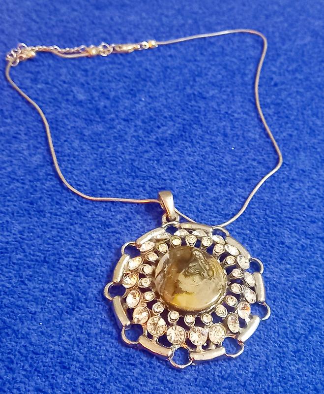 Выразительное, винтажное колье. Сплав серебряного тона, керамика, кристаллы. Отличное сочетание. Ярко смотрится. Подвеска крупная - 6*6 см. Тяжелое. Качественное.Длина цепочки - 44 см, есть удлинитель. Стан - очень хороший, винтажный. Винтаж - 80-е. Англия.