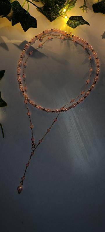 Колье 2 в 1 из искусственных жемчужин и кварца в розовом цвете. Очень красиво смотрится в живую. Нежное и стильное украшение.