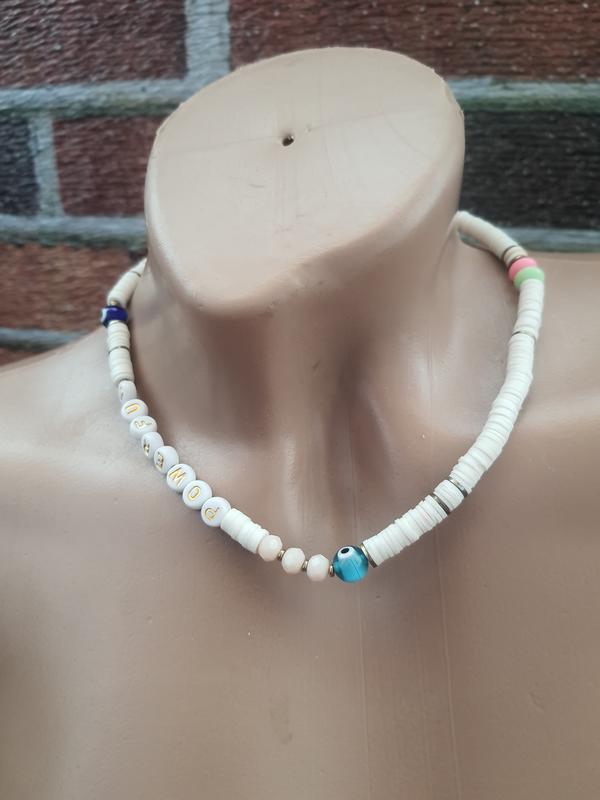 Чокер-бусинто с глазом и надписью в идеальном состоянии О 14 см,размер бусин 0.5 см