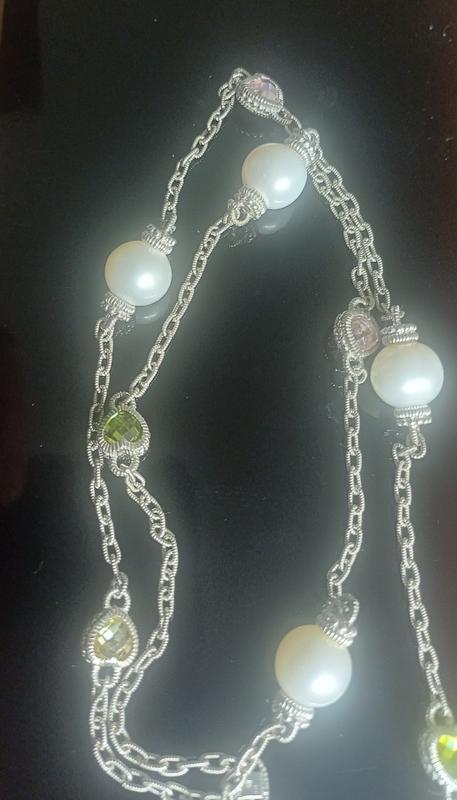 Judith ripka оригінал. Серебряное колье с жемчужинами и циркониями в форме сердца. Длинна 80 см. Стан - идеальный.