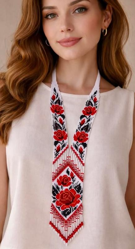 Предлагаю к продаже изысканный гердан из бисера в традиционном украинском стиле. 🔸 Ручная работа 🔸 Качественный чешский бисер 🔸 Яркий орнамент с красными розами 🔸 Легкий, комфортный в носке 🔸 Отлично сочетается как с вышиванкой, так и с современной одеждой Это украшение станет стильным акцентом вашего образа и отличным подарком для близкого человека ❤️ По Вашему желанию могу сделать других цветов ( срок изготовления 4-5днев, 200гр предоплата)