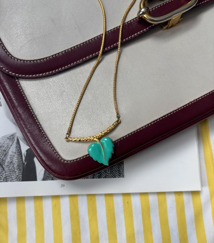 Елегантне кольє у теплих золотистих тонах 🌟950📮 Витончений ланцюжок плетіння «змійка» красиво лягає по шиї та має довжину 42–43 см — ідеальна посадка під ключиці. Центральний акцент — підвіс у формі стилізованого листочка ніжного бірюзового відтінку. Гладенька емаль додає прикрасі свіжості та легкого вінтажного шарму. Делікатна золота вставка над підвісом гармонійно поєднує елементи й підкреслює витонченість дизайну. Надійна застібка забезпечує комфорт у носінні. Прикраса чудово доповнить як базовий повсякденний образ, так і романтичний чи літній лук. 💚