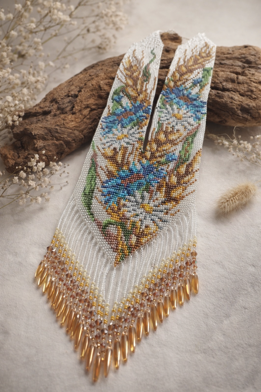 Прикраса виконана з чеського бісеру вищого гатунку та скляних намистин. Розмір гердану в довжину від середини пояска до низу низочок 60см, ширина в кулоні 9см. Дуже ніжний і яскравий одночасно.🌾🌾🌾🌺💥