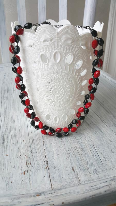 Яркие пестрые черно-красные бусы, колье. Идеальны под вышиваночку. Застежка регулируется