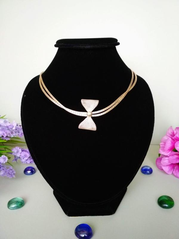 Серебристое колье с бантиком на резинке.