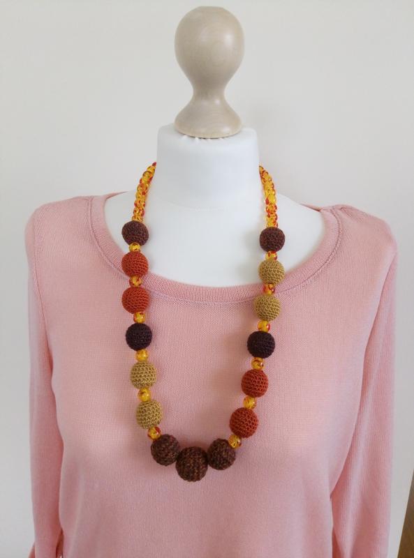 Очаровательные бусики ручной работы станут прекрасным тёплым акцентом вашего образа. Длина изделия 80 см, цвет : горчичный, терракотовый, шоколадный и меланж , декор бусины - имитация янтаря.