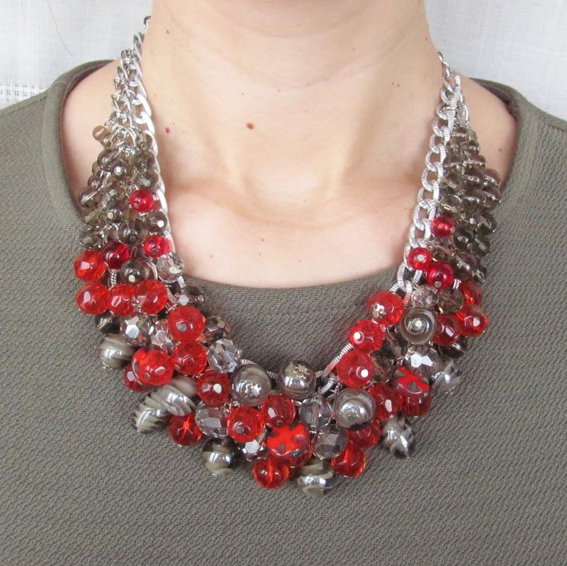 Яркое, объёмное украшение! Выполнено с эффектных бусин разного диаметра. Не лёгкое, так как все бусины стеклянные. Длина - 48 см