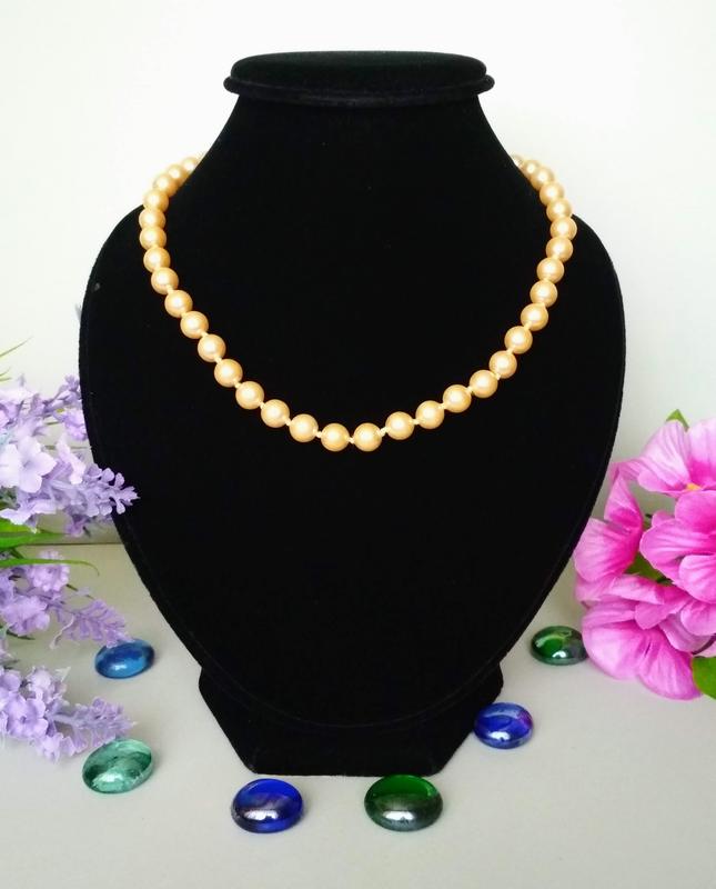 Нежное ожерелье с бусинами (имитация жемчуга). Длина: 41 см.