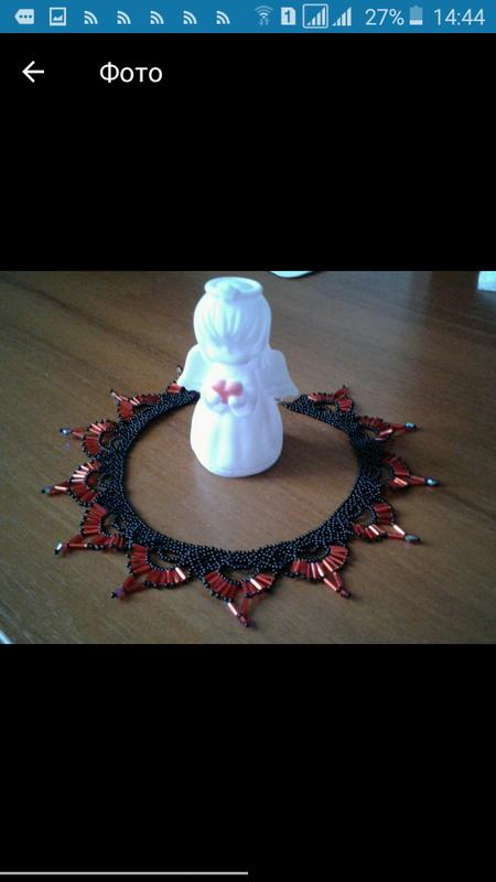 Сделаю повтор. Колье из скляруса, бисера и бионуса. Очень красиво переливается на свету.