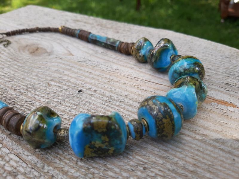 Голубые керамические бусы