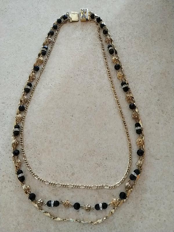 красиве ожерелье в три ряда с разной длиной для придания эстетичности длина самого короткого - 60см самого длинного 70см. есть потёртости на самом замочке, кроме этого дефектов и брака нет. Европейское качество