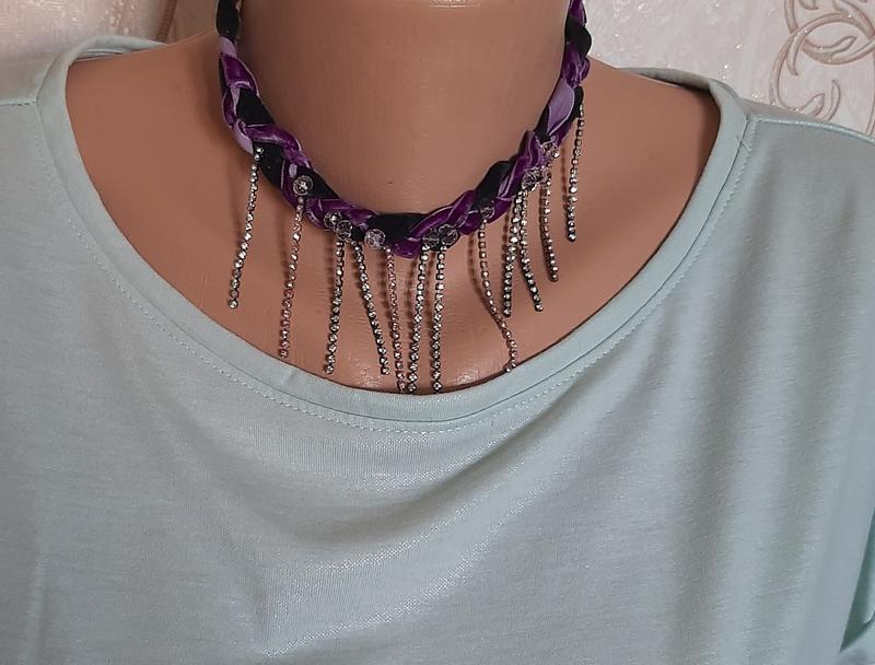 состав: стразы, бархат, вилюр, цвет лаванда смотриться бесподобно плетение косичка